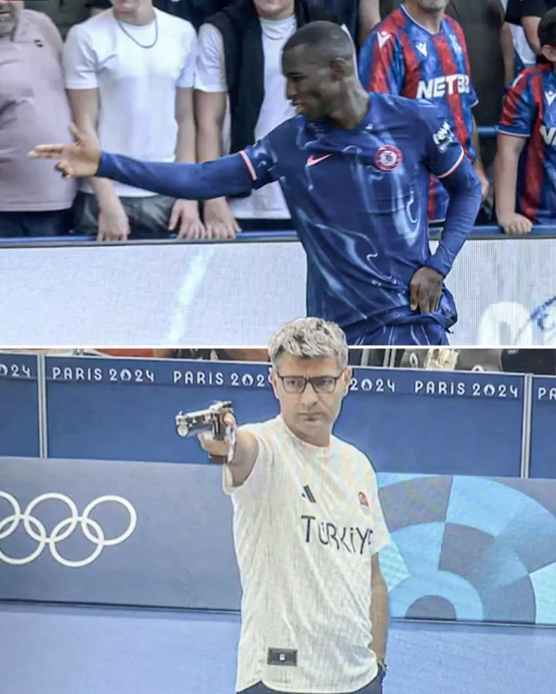 مهاجم چلسی همان ژستی را به نمایش گذاشت که در جریان المپیک ۲۰۲۲ پاریس بسیار مورد توجه قرار گرفت و حتی شاید بتوان گفت به تصویر اصلی این دوره از المپیک تبدیل شد. ژست تیراندازی یوسف دیکچ، تیرانداز اهل ترکیه، که در رقابتهای تپانچه بادی بدون استفاده از تجهیزات و درحالیکه دستش را در جیب کرده بود با خونسردی تمام شلیک کرد و از قضا به مدال نقره رسید.