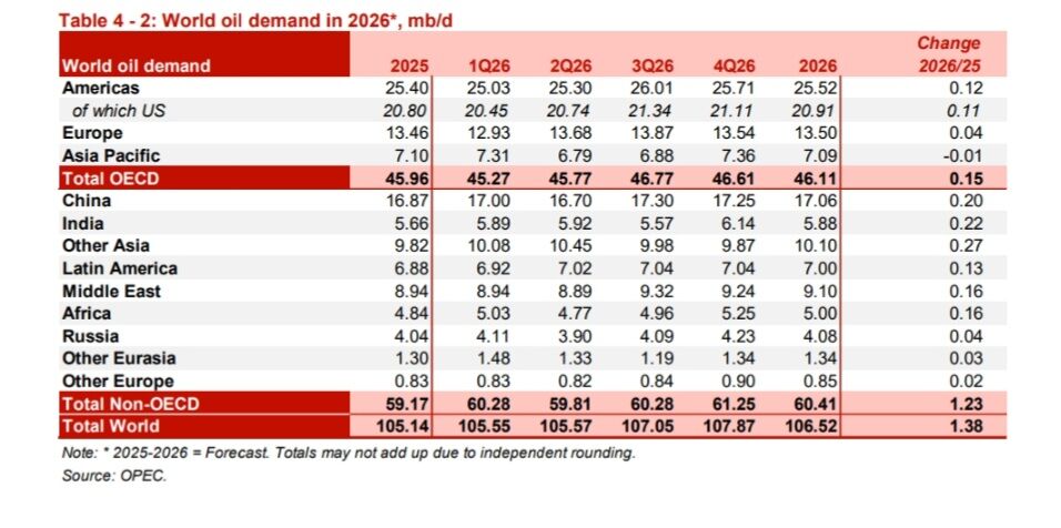 بر اساس تازهترین گزارش ماهانه دبیرخانه اوپک (دسامبر)، تقاضای جهانی نفت خام برای سال ۲۰۲۵ با یک میلیون و ۲۳۰ هزار بشکه افزایش روزانه همراه خواهد بود. مجموع تقاضای نفت جهان برای سال ۲۰۲۵، ۱۰۵ میلیون و ۱۴۰ هزار بشکه پیشبینی شده است.